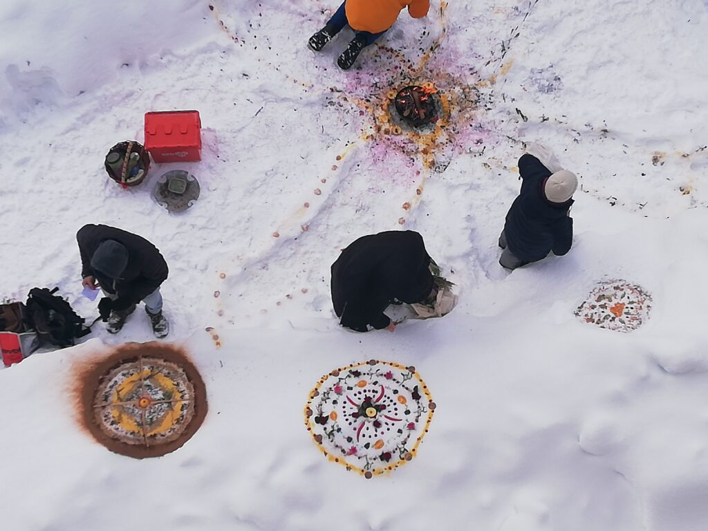 Wir reflektieren durch die erweiterte Perspektive der Winde der 4 Himmelsrichtungen, was wir erbaut haben und atmen dem was bleiben mag, Lebenskraft ein.